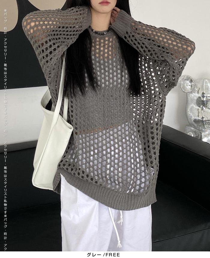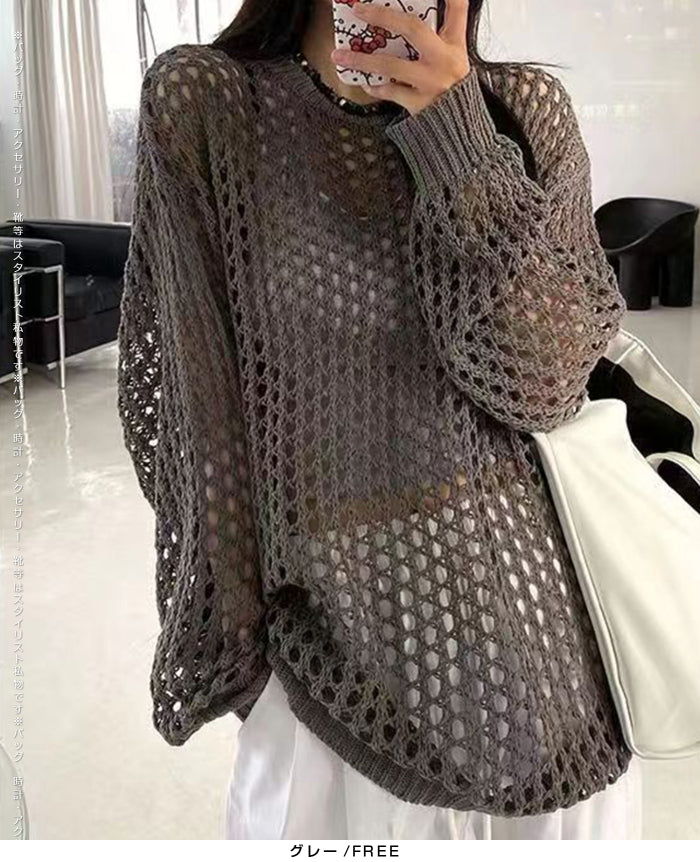 旬な“透け”を楽しむ、軽やかな透かし編みメッシュニット - FREEサイズ / グレー ...は取り寄せ中で入荷次第発送します。