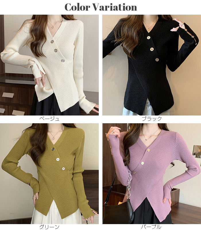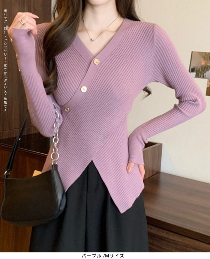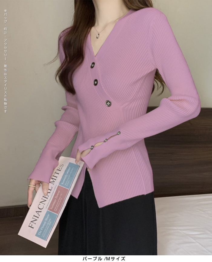 【 スリットリブニットトップス 】 シンプルだけど、サイドスリットでぐっとおしゃれに。 ほどよくフィットして体のラインをきれいに見せてくれる、 秋冬に活躍する万能ニットです。 1枚で着ても、ジャケットやカーディガンのインナーにも◎ 「今日なに着よう?」と迷った日に頼れるデイリーアイテム。 《商品ポイント》 ・サイドスリットで抜け感プラス ・細リブ素材で自然に細見え ・シンプルデザインで合わせやすい ・秋冬コーデに毎日使えるベーシックアイテム ・カジュアルにもきれいめにも対応できる着回し力◎ 《デザイン・シルエット》 細リブ素材で着心地がよく、伸縮性もあってラク。 丈感は長すぎず短すぎず、パンツにもスカートにも合わせやすいバランス。 サイドのスリットがちょっとしたアクセントになって、シンプルコーデでもこなれ感を出せます 《コーディネート提案》 ・デニムと合わせて週末のお出かけコーデに ・ジャケットのインナーにしてオフィススタイルに ・ロングスカートと合わせてフェミニンに ・ワイドパンツでゆるっと大人カジュアルに 《サイズ・カラーバリエーション》 サイズ:S/M/L カラー:ブラック/パープル/ベージュ/グリーン 《素材・機能性》 ・素材:ポリエステル/ポリウレタン ・透け感:なし(淡色はややあり) ・伸縮性:あり ・厚み:普通 |