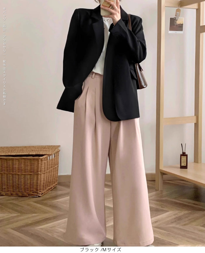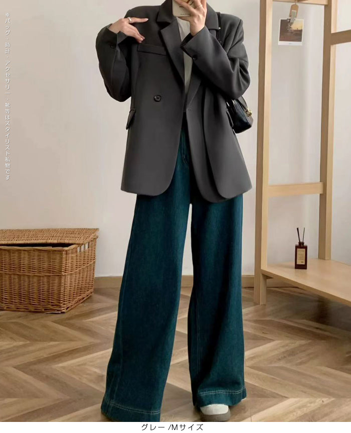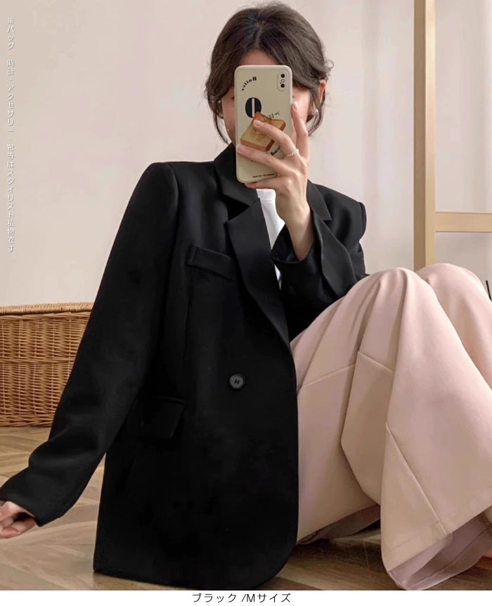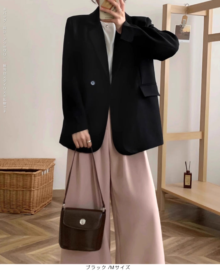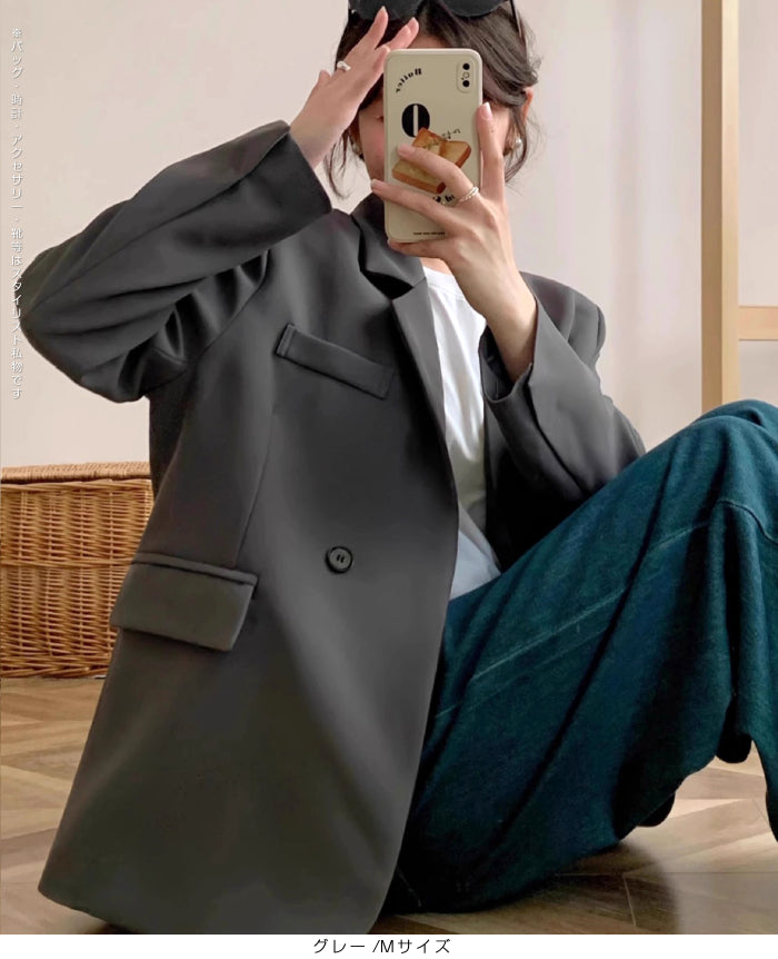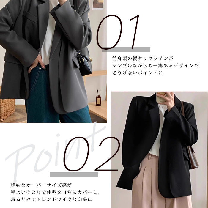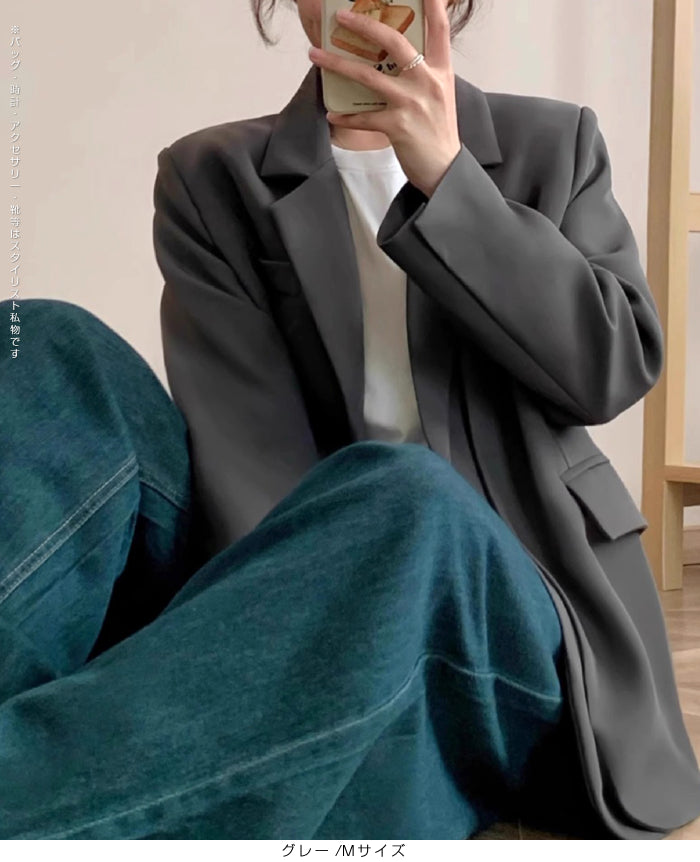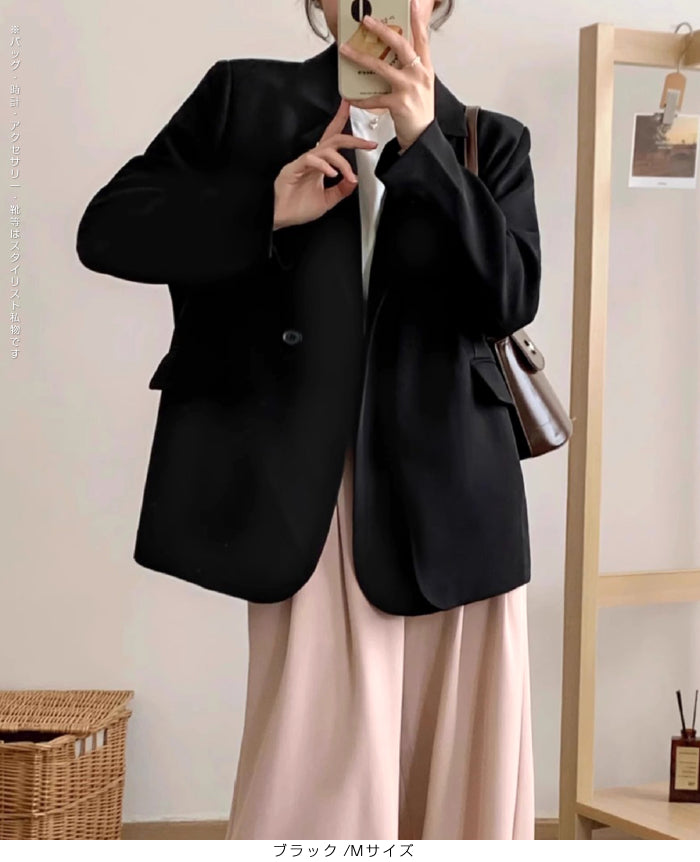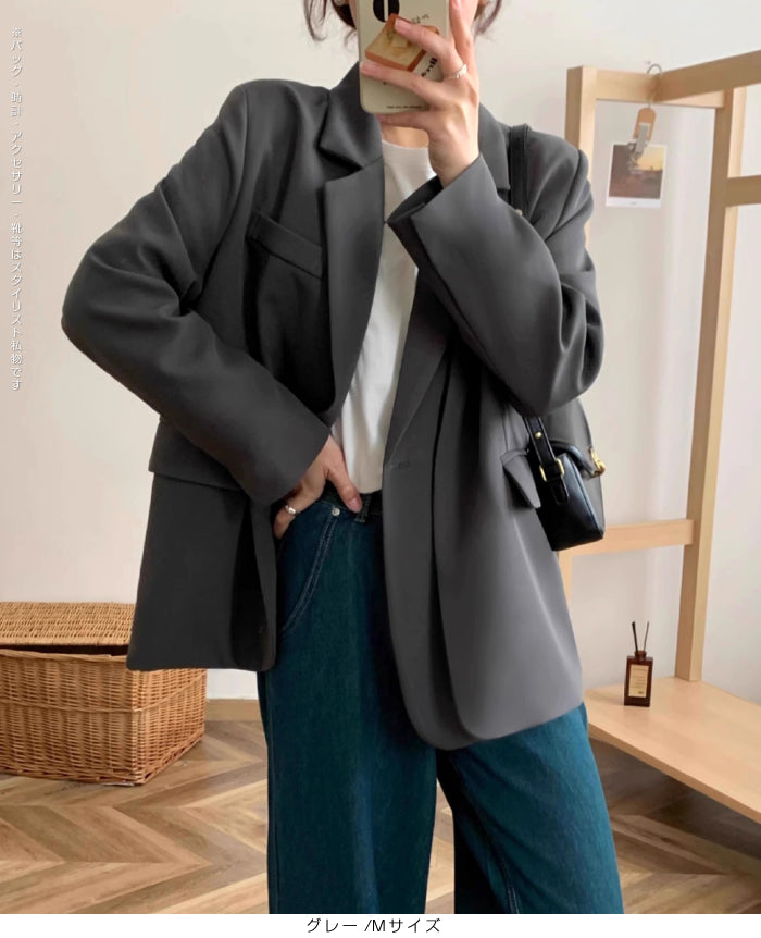 【オーバーサイズテーラードジャケット】 秋冬の肌寒い時期にサッと羽織れる、 トレンド感あふれるテーラードジャケット。 クラシカルなテーラードデザインに、 ゆとりのあるシルエットを掛け合わせることで、 きちんと感と抜け感の両立を実現しました。 Tシャツやブラウスの上から羽織るだけで、 コーディネートが一気にアップデート。 オンにもオフにもマルチに対応する、 ワードローブに一着あると頼れるアイテムです。 《商品ポイント》 絶妙なオーバーサイズ感:程よいゆとりで体型を自然にカバーし、 着るだけでトレンドライクな印象に 上品なラペルデザイン:顔まわりをすっきり見せる計算されたカッティング 機能的なポケット:便利で見た目にもアクセントになるフラップポケット付き 前身頃の縦タックライン:シンプルながらも一癖あるデザインでさりげないポイントに しっかりとした縫製:型崩れしにくく、長く愛用できる仕立て 軽量設計:見た目のしっかり感に反して軽やかな着心地で、長時間着ても疲れにくい 《デザイン・シルエット》 クラシカルなテーラードジャケットの雰囲気を残しつつ、 現代的なオーバーサイズシルエットでアップデート。 着丈はヒップが隠れる程度で、 体型カバーとバランスのとれた印象を演出します。 袖丈はやや長めに設定されており、 袖口を少し折って着ても◎ ボタンはシンプルな2つボタンで、開けても閉めてもサマになります。 《コーディネート提案》 白シャツ×スキニーパンツで清潔感のある通勤スタイルに。 厚手カットソー×ワイドパンツでトレンド感と動きやすさを兼ね備えたコーデに。 厚手ニット×デニムパンツ×スニーカーで、 リラックス感とあたたかさを両立したお出かけコーデ。 タートルネック×フレアスカート×ブーツで、 きれいめで女性らしさのあるコーデに。 《サイズ・カラーバリエーション》 サイズ展開:S / M / L カラー展開:グレー / ブラック 《素材・機能性》 素材:ポリエステル100% 裏地:あり 生地の厚み:普通 硬さ:微硬 透け感:なし 伸縮性:なし |