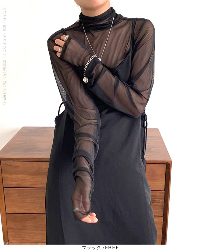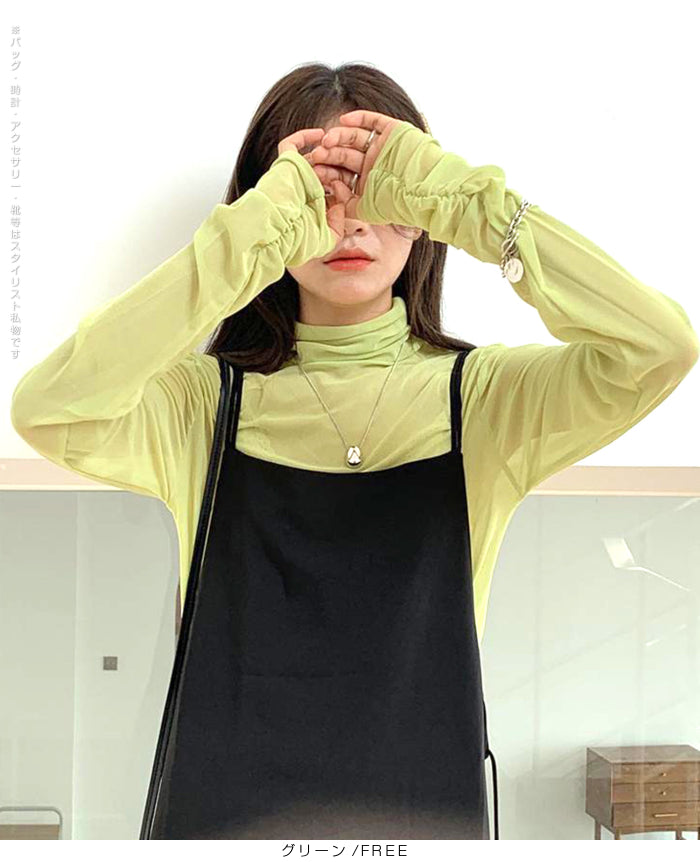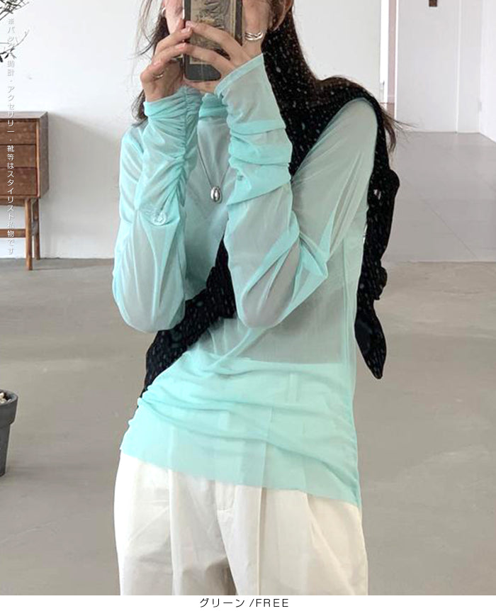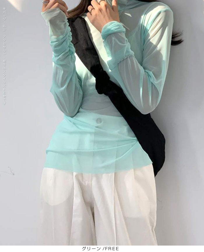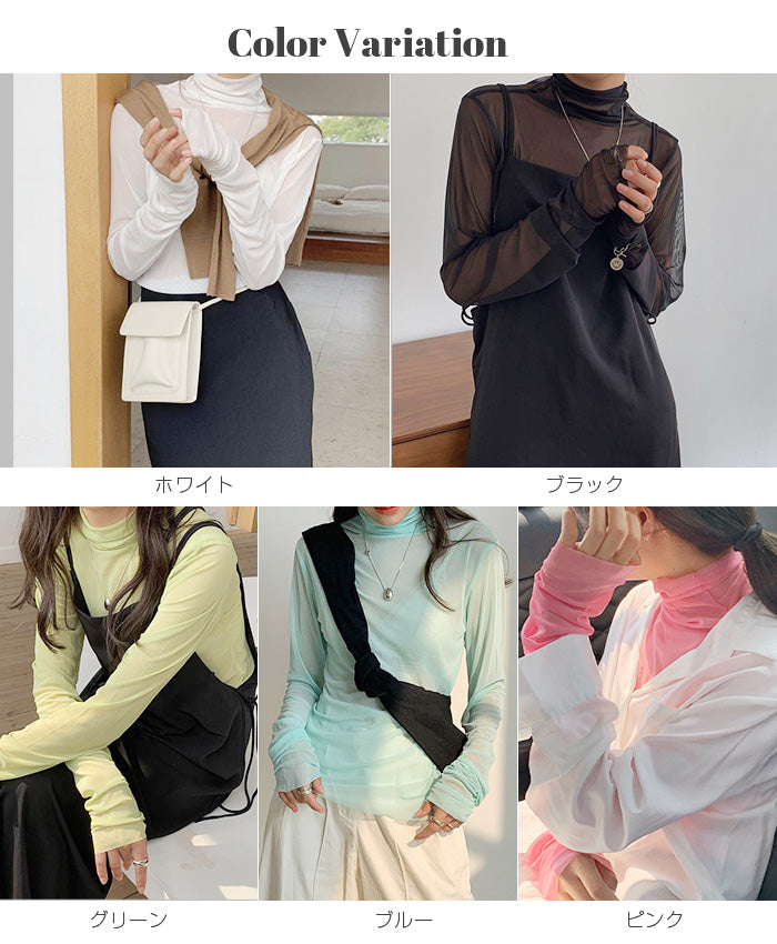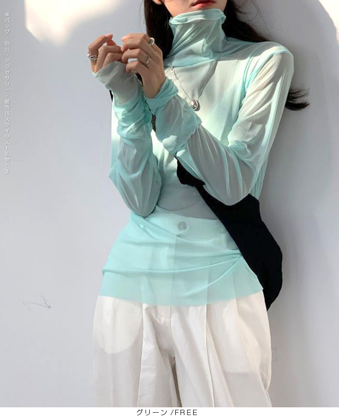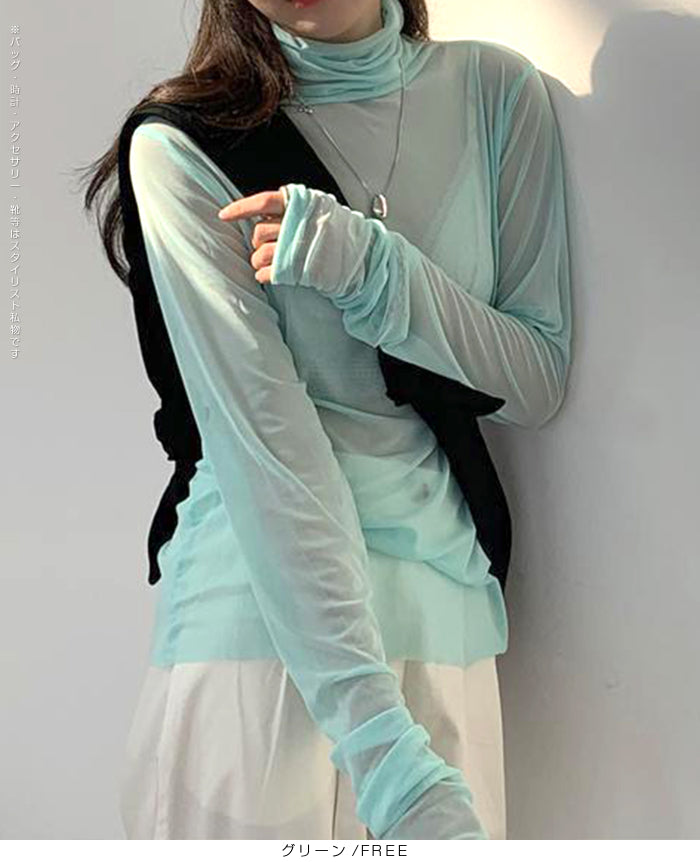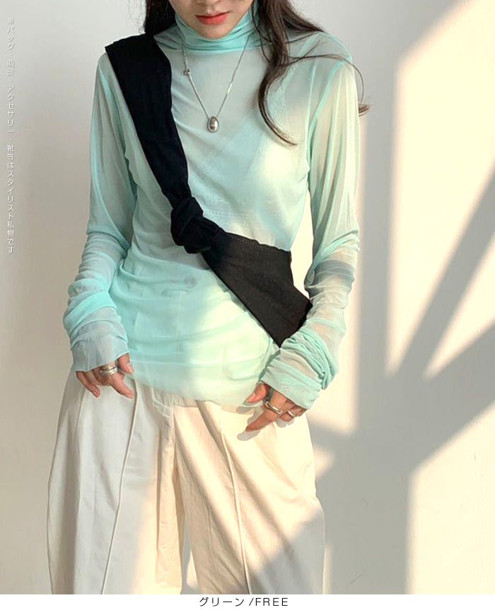 シアーメッシュタートルネックトップス