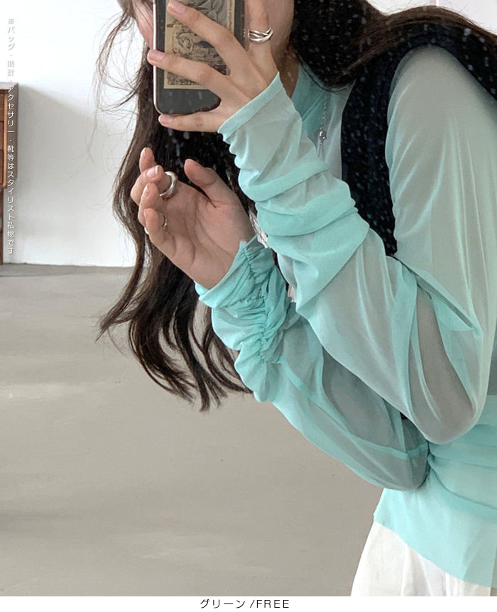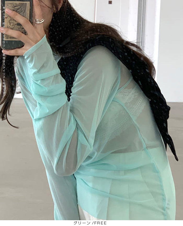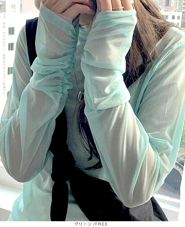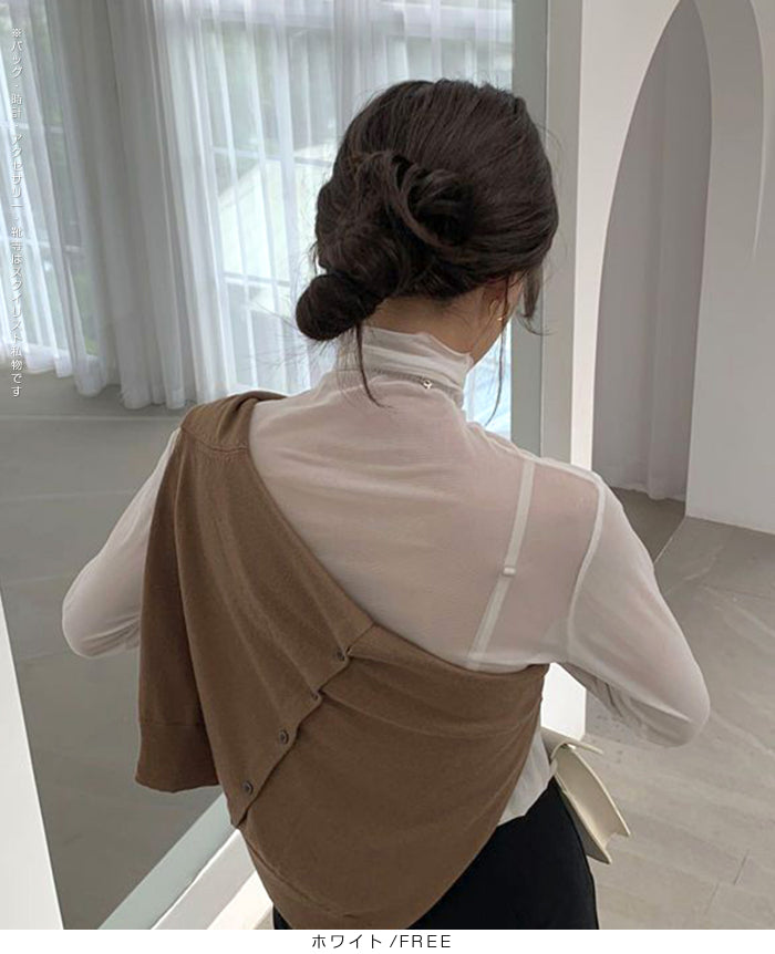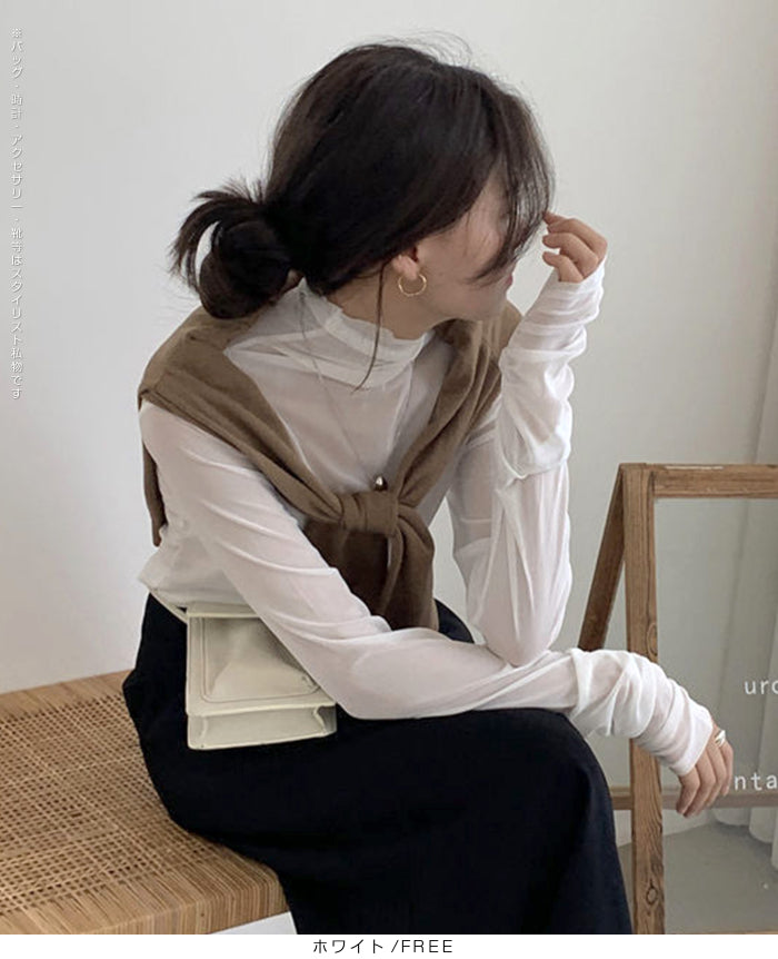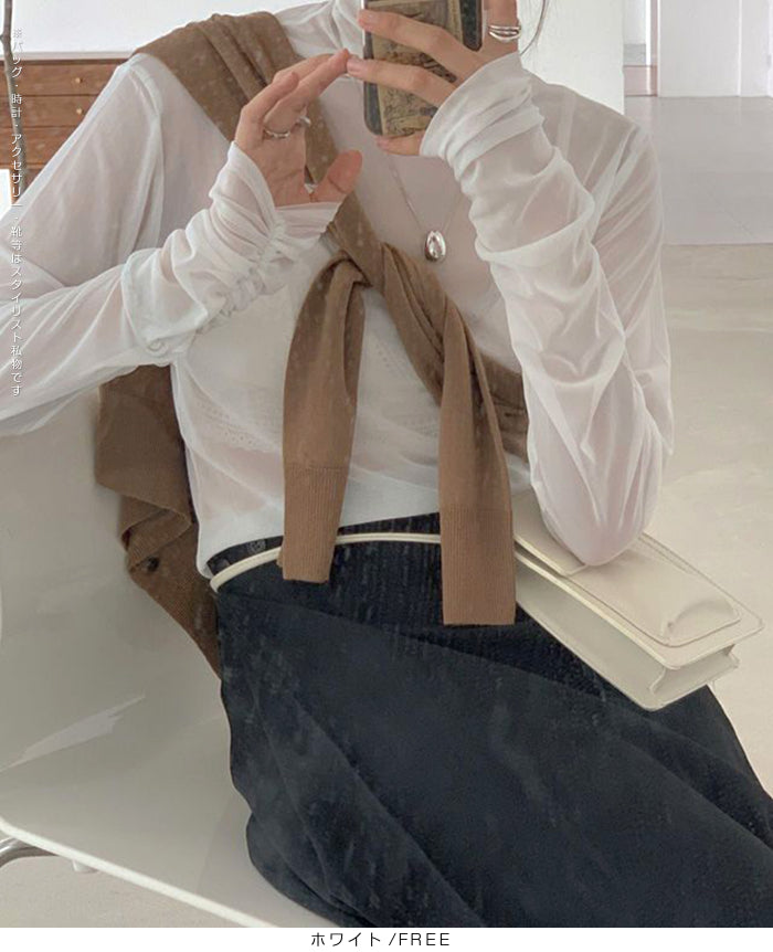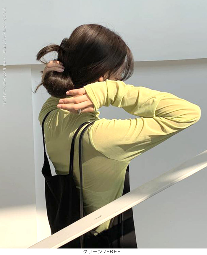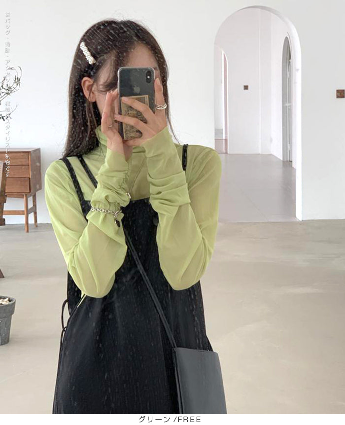 シアーメッシュタートルネックトップス
