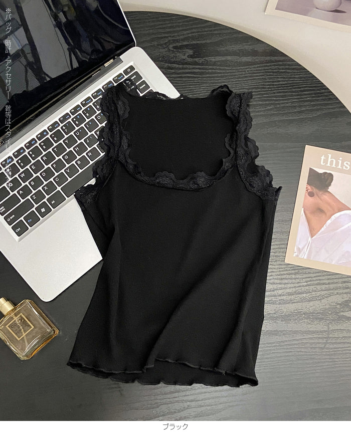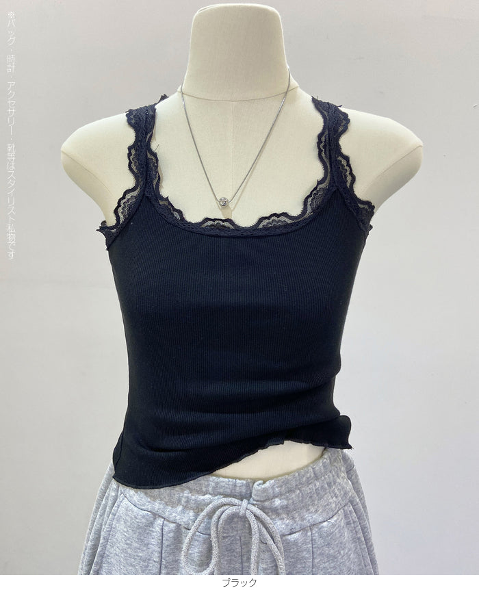 レースリブキャミソール - Sサイズ / ブラック ...は取り寄せ中で入荷次第発送します。